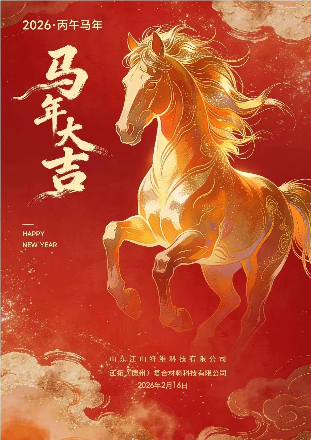 On the occasion of the 2026 Spring Festival, the Year of the Horse, all colleagues at Jiangshan and Jiangtuo extend our most sincere New Year blessings and profound respect to the leaders at all levels and friends from all walks of life who have long supported our company's development, to our partners who have worked shoulder-to-shoulder with us in sincere collaboration, and to our families who have steadfastly stood by us and worked diligently.